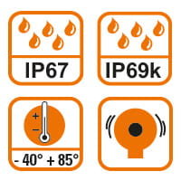 Hög IP-klassDen höga IP-klassningen och det utökade temperaturområdet gör att den passar utmärkt på mobila applikationer t.ex. kranbilar, timmerbilar och skogsmaskiner.
