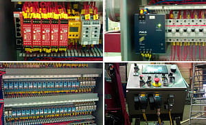 Kübler pulsgivare, Molex M12-kablage, Bernstein Alukapsling, Harting standarddon, Harting Ethernet, Auer panelsummer och panellampa, Puls spänningsaggregat, Releco-relän samt Allen Bradley säkerhetsrelän.